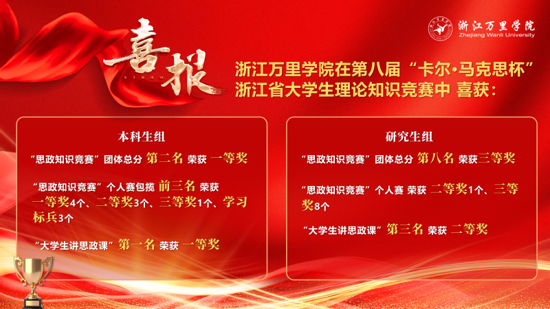“卡尔·马克思杯”浙江省大学生理论知识竞赛是由中共浙江省委宣传部、中共浙江省委教育工委等主办的省级A类学科竞赛,覆盖广、影响大。本届赛事吸引了全省105所高校、近50万名大学生参与。学校党委高度重视此次赛事的组织备赛工作,构建起党委宣传部牵头、马克思主义学院和研究生院协同、各学院积极联动的一体化工作机制,广泛动员学生参与理论学习与选拔,以赛促学激发学生理论学习热情,以赛促教推动学校思政教育走深走实走活。备赛期间,学校科学制定备赛方案,组建专业指导团队,围绕知识体系构建、思维方法训练、心理状态调整以及讲课技能提升等方面,为参赛学子提供全方位保障。